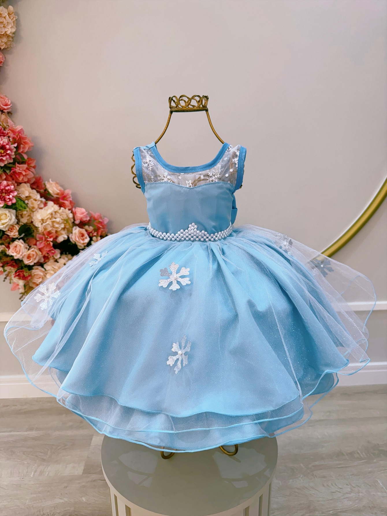 Vestido Infantil Azul Frozen Elsa Gelo C/ Capa de Luxo